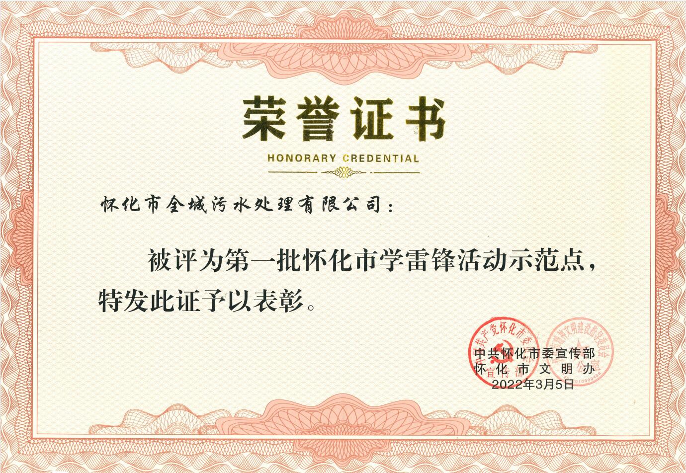 2022年3月被中共懷化市委宣傳部評為懷化市第一批“學(xué)雷鋒活動示范點”榮譽稱號